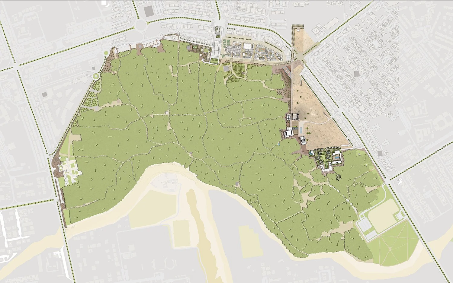 The Al Ain Master Plan creates an interconnected network of cultural venues and public spaces that preserves the Oasis and its periphery. By establishing new visual and physical connections between the Oasis and the surrounding city, the master plan effectively reinforces the relationship between the two. It also expands and enhances the existing Al Ain National Museum, creating a new anchor for what is to become the city’s Cultural Quarter.