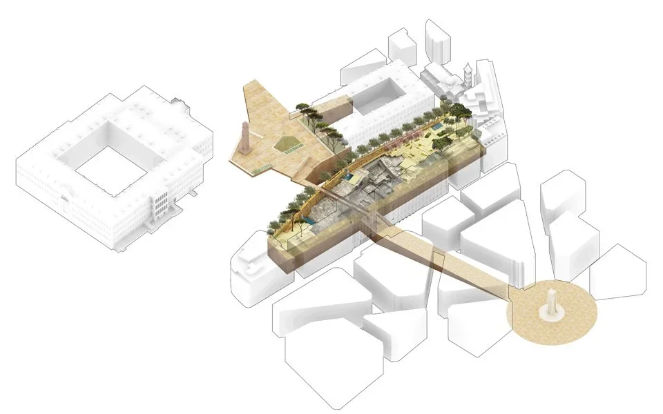 Solidere is regenerating the Beirut Central District with a master plan designed to enhance public space and street life, thus working to heal the deconstruction of the war, preserve cultural heritage, and reinvigorate the city center. As part of this effort, excavations of Beirut's rich archaeological heritage are being integrated within the city’s fabric. One such example is the Roman Baths site, which is composed of ancient ruins between two gardens. Developed for an invited design competition, the proposal preserves and enhances this historically significant yet underutilized site into an versatile urban destination.