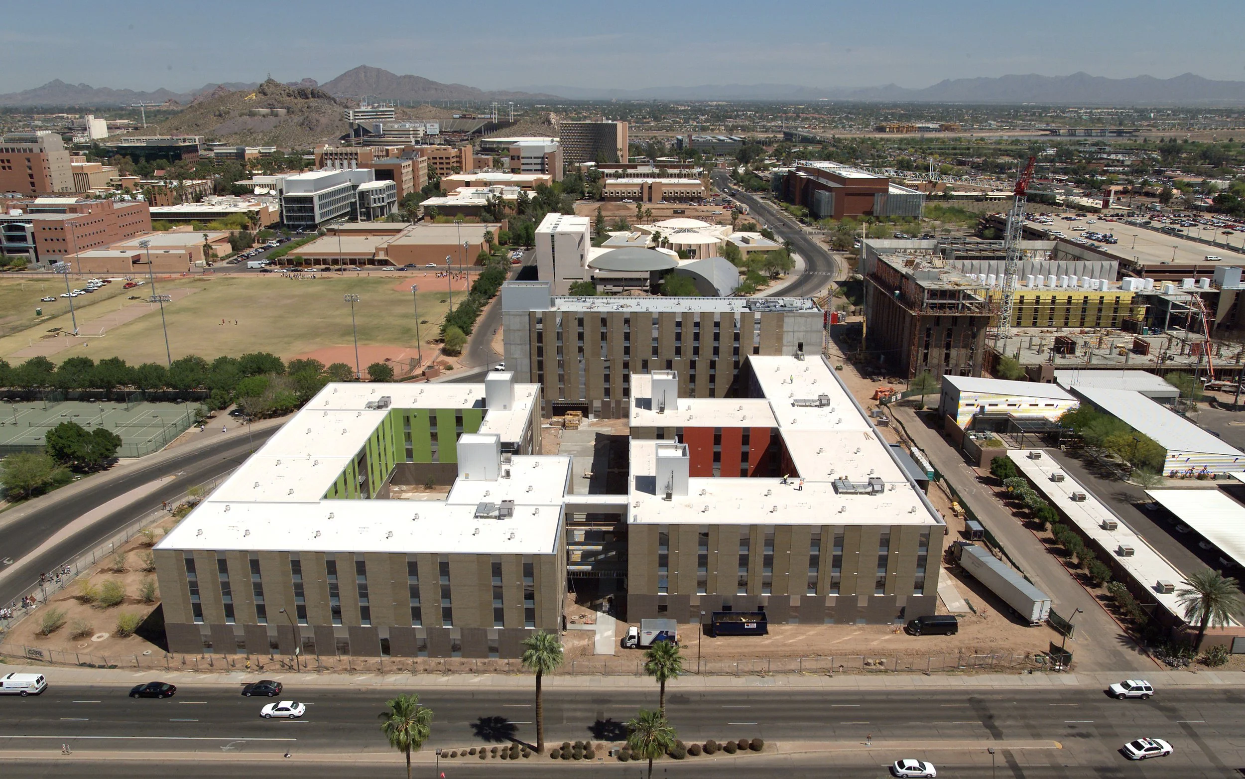 Located at the southeast corner of Arizona State University’s Tempe campus, The Hassayampa Academic Village houses dorm rooms and classrooms, as well as computing, dining, and retail components. Organized as a series of four-story courtyard buildings, the complex is anchored by two towers that flank the primary connections to campus and serve as thresholds to shared gallery spaces.