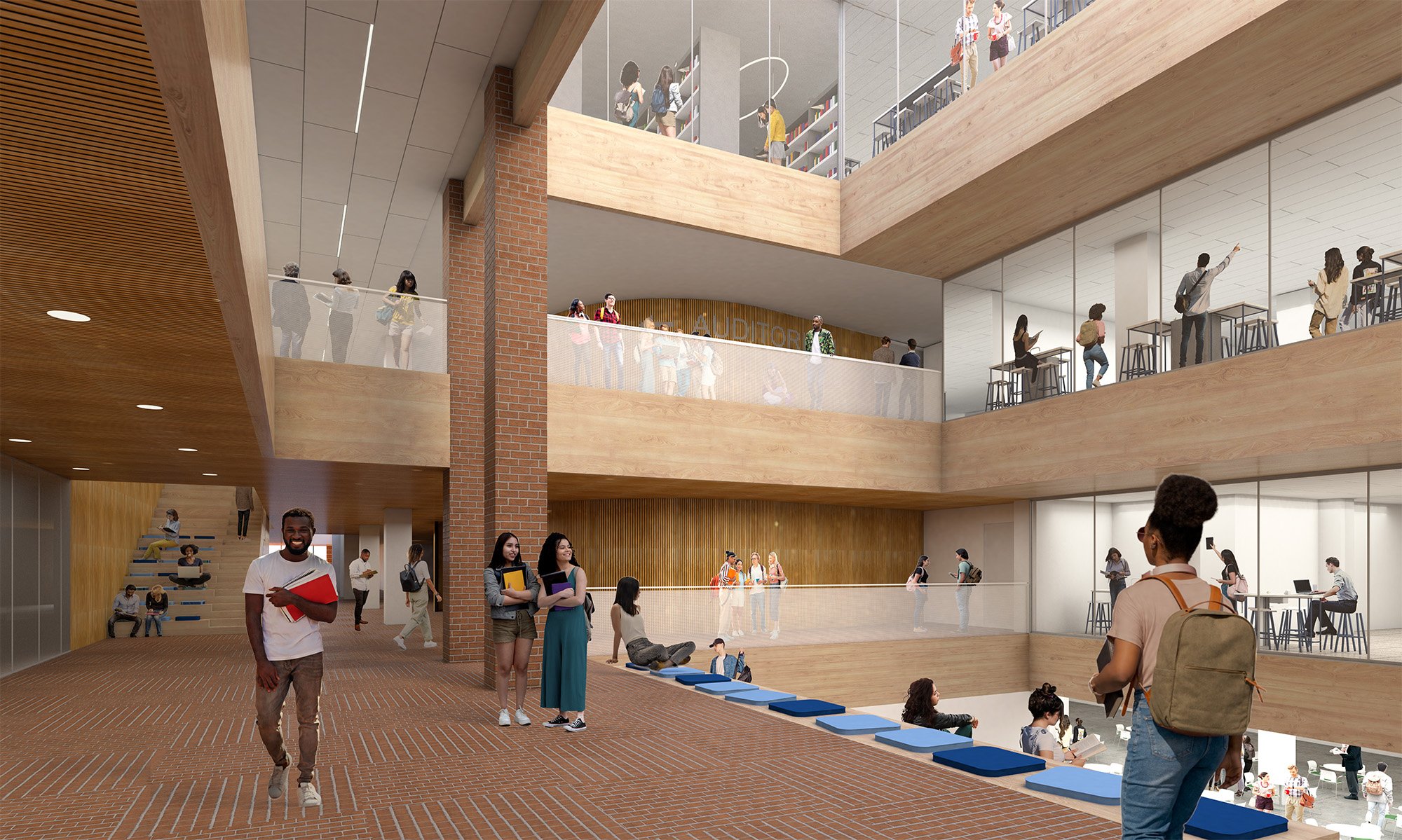The design proposes two additions to the original 1970s building, a new high-performance thermal envelope, and the transformation and enclosure of two existing exterior courtyards into interior light-filled common areas. Clusters for collaboration organize teams and grades, and provide access to pull-out spaces, teacher planning space, and state-of-the-art STEM, athletic, and arts facilities.