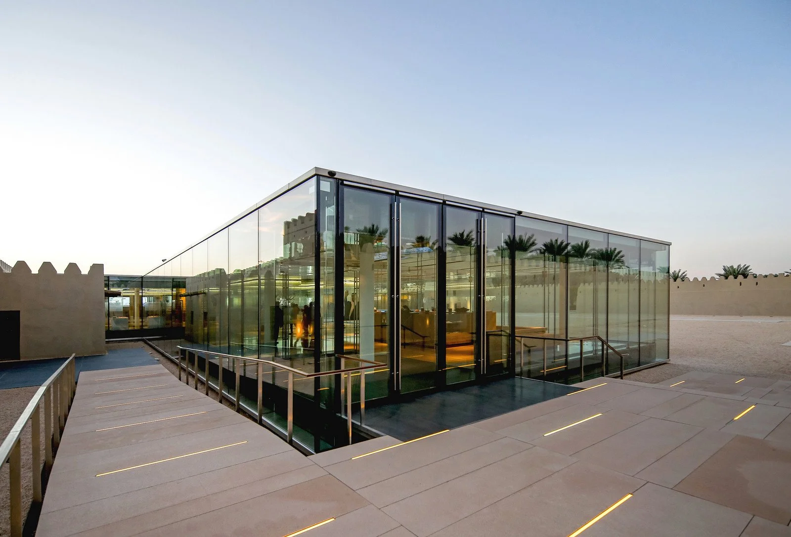 The adaptive reuse and substantial addition to Qasr al Muwaiji, a historic fort and grounds within the city of Al Ain in the United Arab Emirates creates a new learning, research, and exhibition facility committed to preserving and providing access to collections relating to Gulf history. Clad entirely in glass, the new structure offers unobstructed views of the grand fort and bears lightly on its grounds. Meanwhile, the refurbished fort houses a permanent exhibition that culminates in a tour of the original rooms of the historic palace.