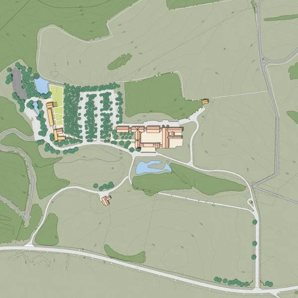 The Center’s mission is to demonstrate, teach, and promote sustainable, community-based food production. The renovated spaces support this mission through their flexible programming, materiality, and connections to the landscape. Conference and classroom spaces are easily divisible to suit varying group sizes, while outdoor spaces can accommodate informal gatherings.