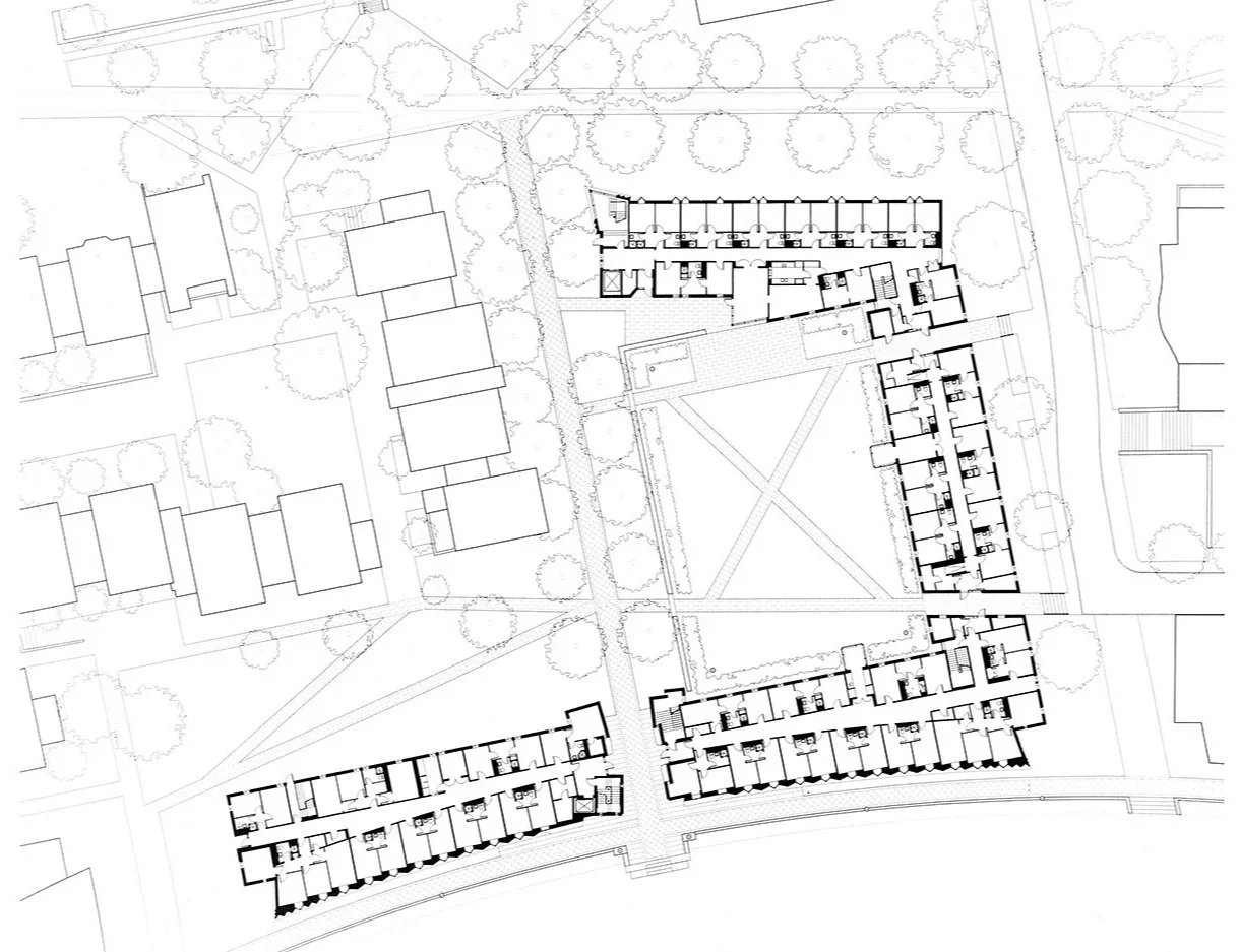 To the north, Scully Hall reinforces College Walk, an important pedestrian corridor linking the east and west campuses. Its design respects the traditional Princeton architectural language, helping to define more traditional residential courtyard spaces.