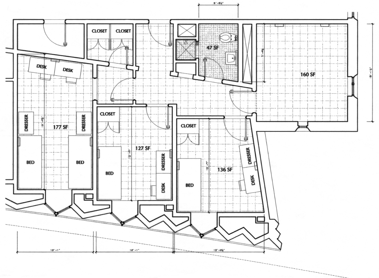 The keystone building in the first phase of the Princeton Fields Master Plan, Scully Hall expands the existing student housing and consists of dormitories for upper-level students, lounges, classrooms, study areas, and kitchenettes. Positioned at the center of the proposed massing complex, Scully Hall functions as the gateway to the elliptical open space containing the playing fields.