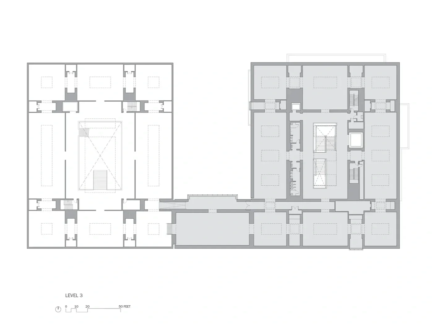 For the Chazen Museum of Art, Machado Silvetti worked with Continuum Architects + Planners to create a strong physical link and a sense of continuity between the existing museum and the new addition. A bridge gallery connects the two buildings, creating a seamless flow of gallery space; its cladding unifies the south façade, establishing a unique campus gateway.