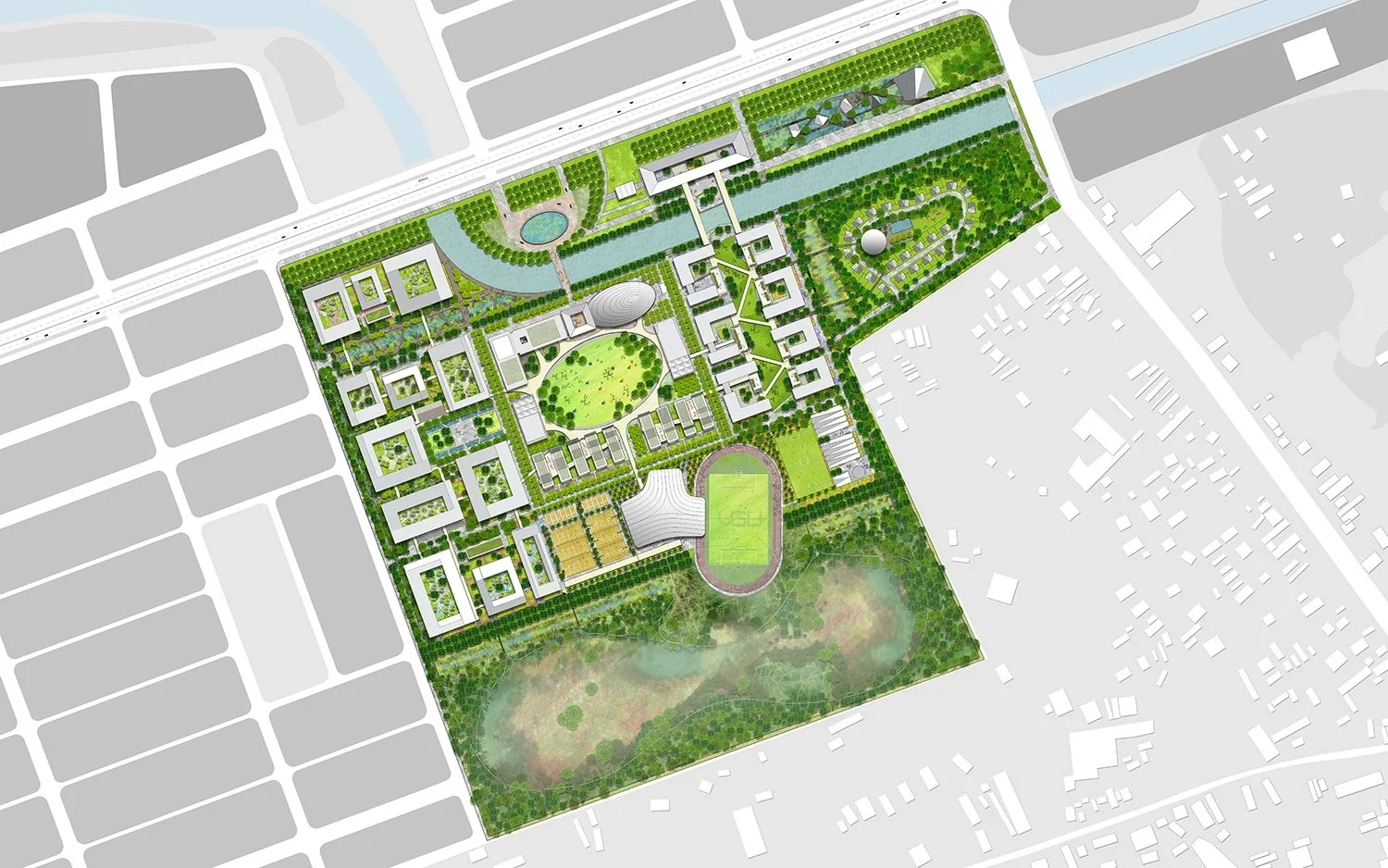The university offers advanced undergraduate and post-graduate programs, capitalizing on the expertise of German academic partners and the demands of Vietnam’s unique scientific, technological, and socio-economic challenges. Machado Silvetti led both the campus master plan and the design for the numerous buildings, including laboratories, classrooms, food-courts, sports halls, administrative spaces, and dormitories for 12,000 students.